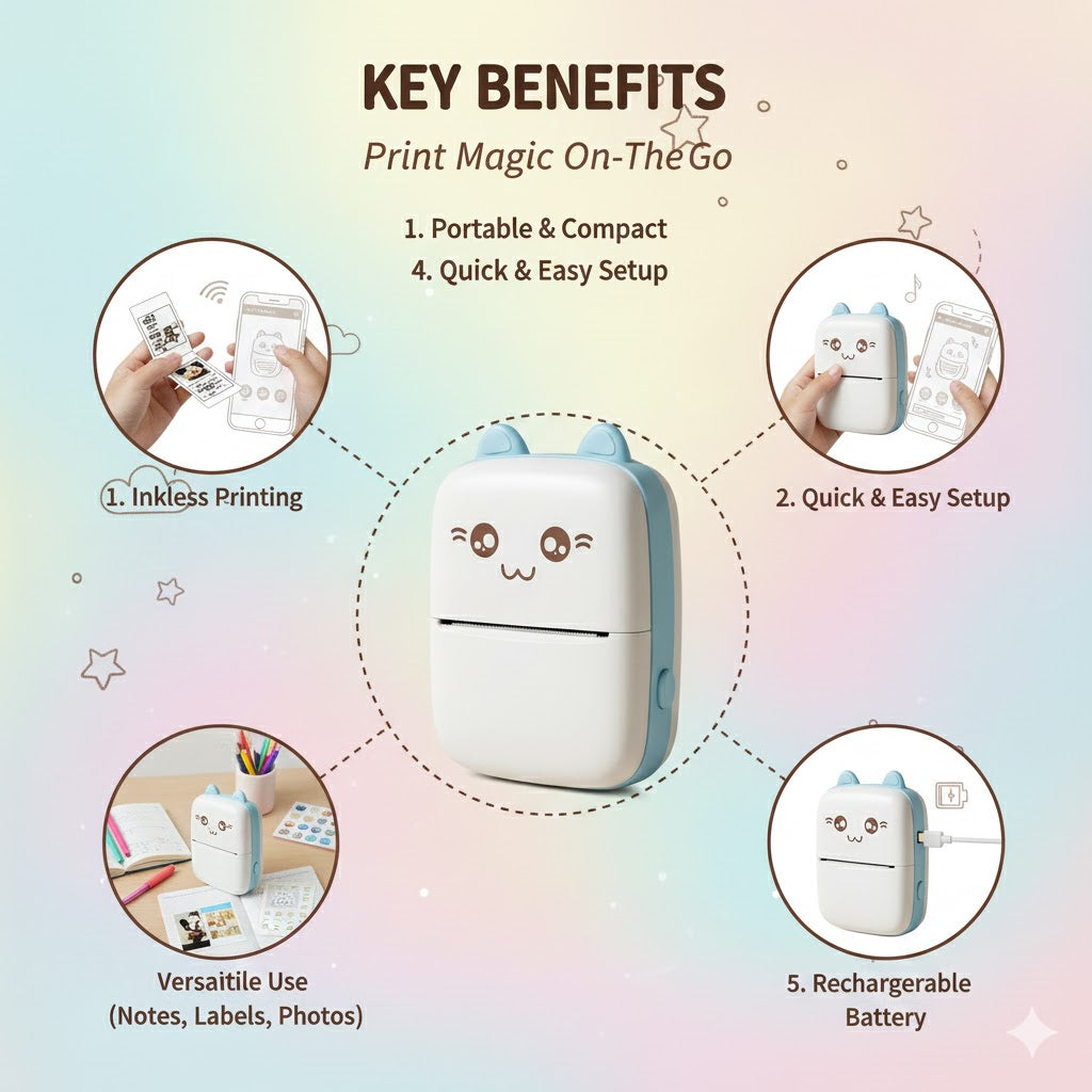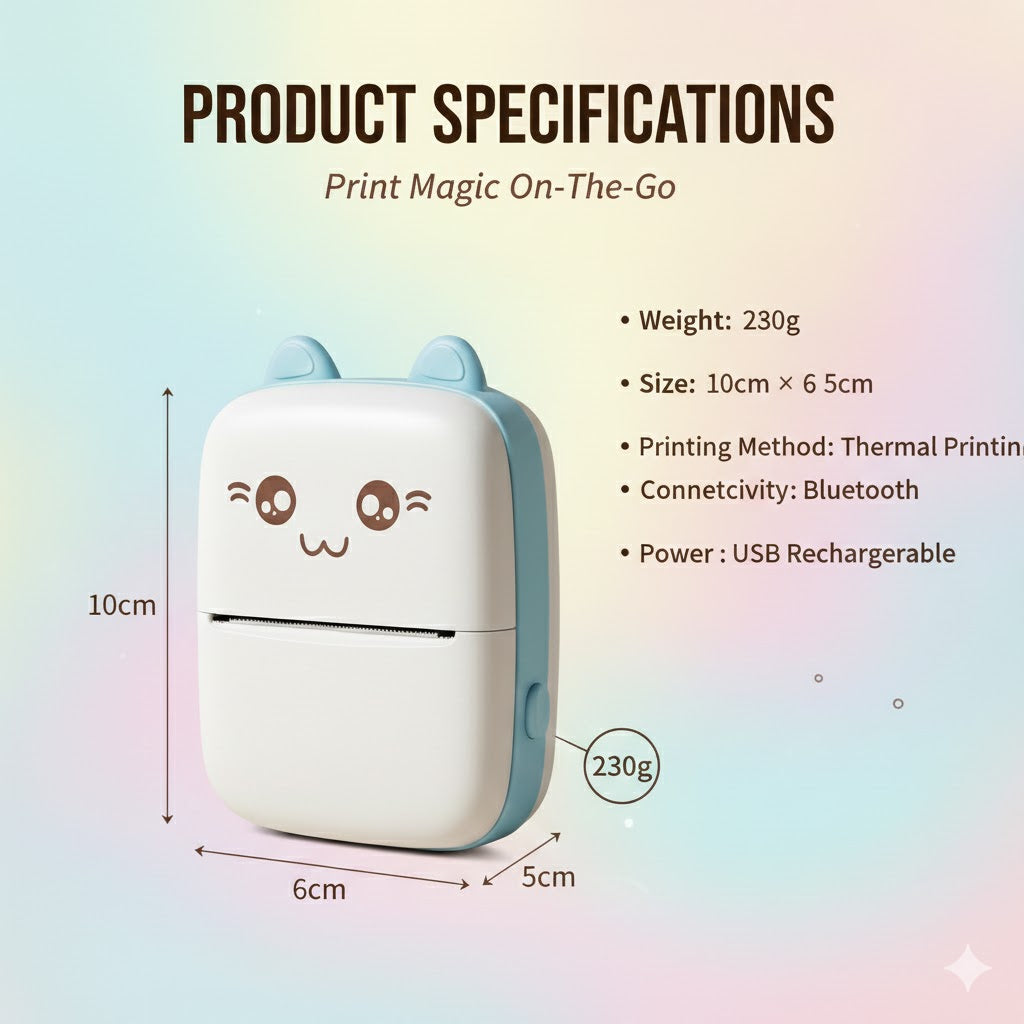 This smart thermal printer uses heat to print, eliminating the need for ink or toner. Say goodbye to messy ink and bulky printers! It's your pocket-sized printing buddy for labels, photos, receipts, and more.